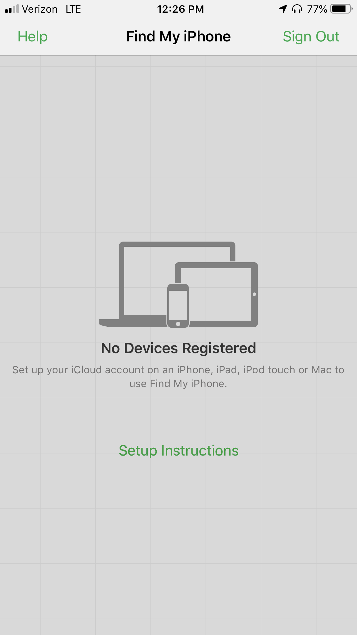I try signing into find my iPhone and it sais I'm signed in already but when I go to list of devices none show up.