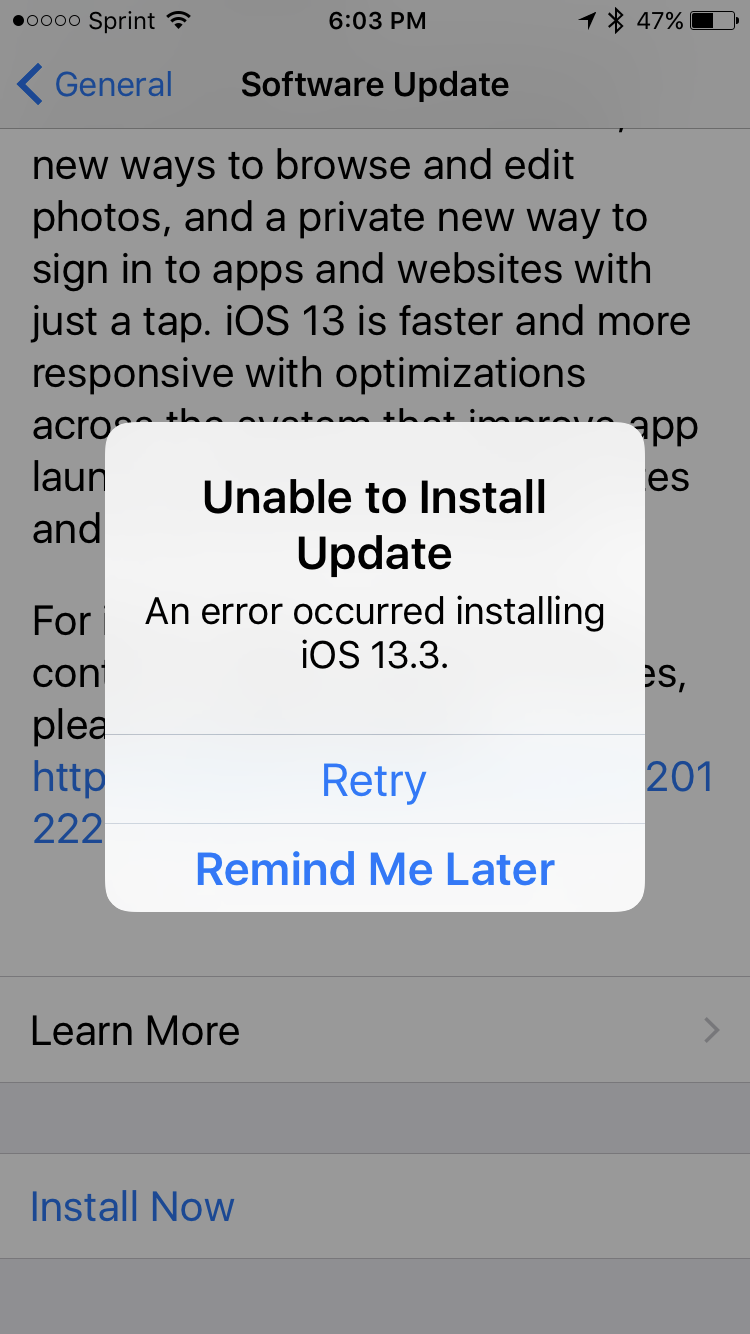 I can't update my iPhone 7