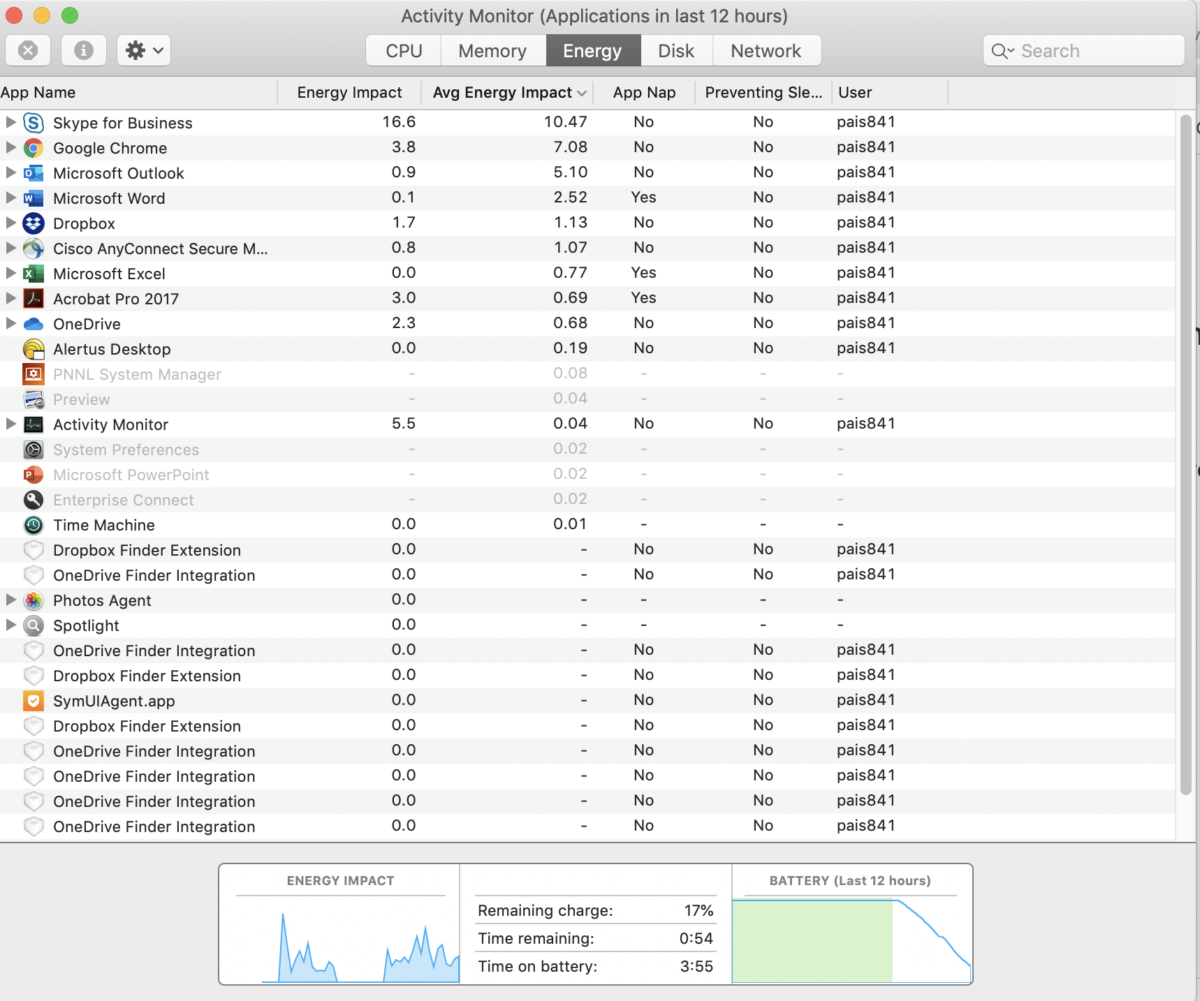 I have a new MBP that is experiencing a short battery life while under normal loads (Chrome, Word, Outlook & Skype). I am getting about 3-5 hrs max while very basic usage (no video loads). Any suggestions appreciated. Thx.