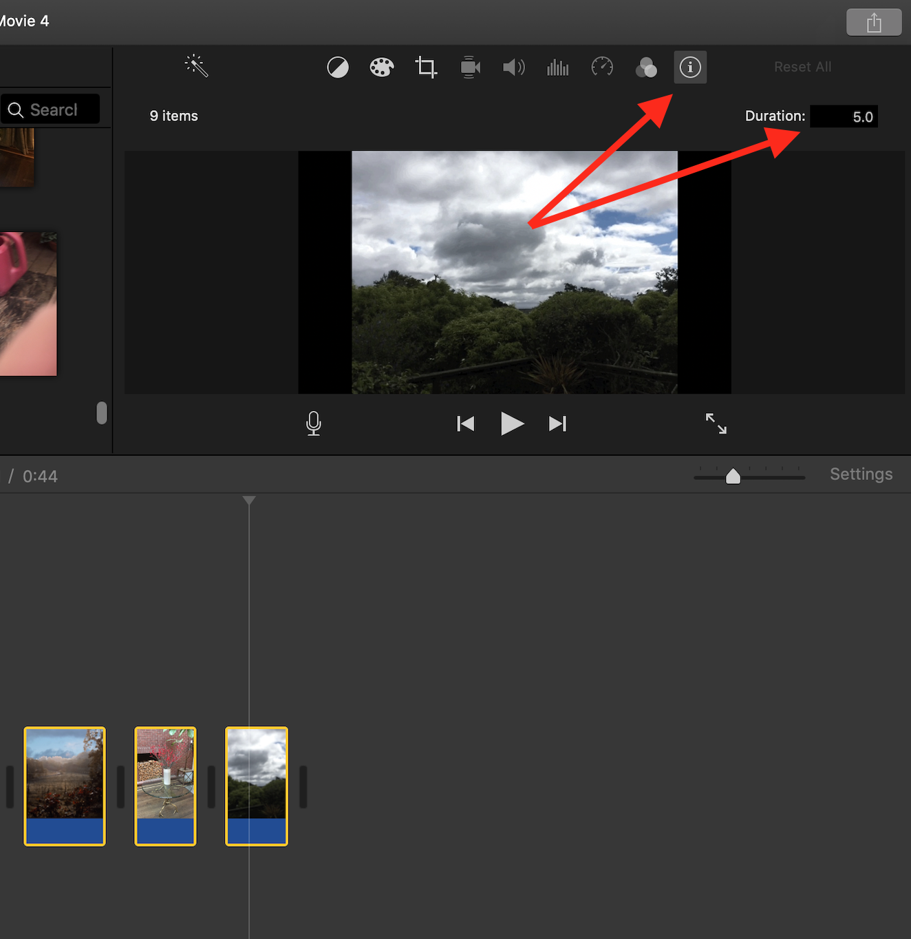 i want to change the duration of all my slides in IMovie. How do I do it without the inspector?