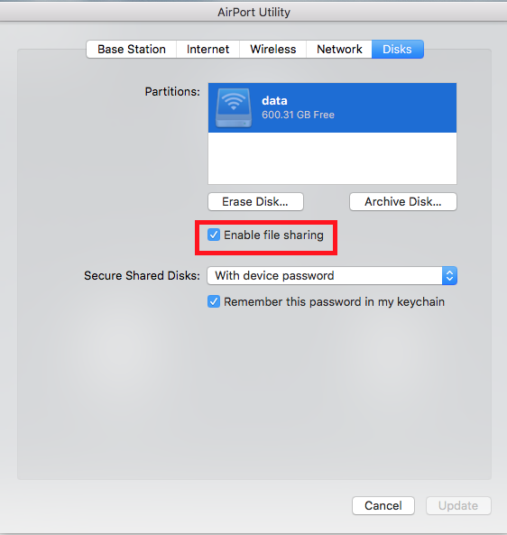 There is a USB memory stick or hard drive plugged into the USB port of the Airport.. if you don't know.. then the answer is you don't have any.