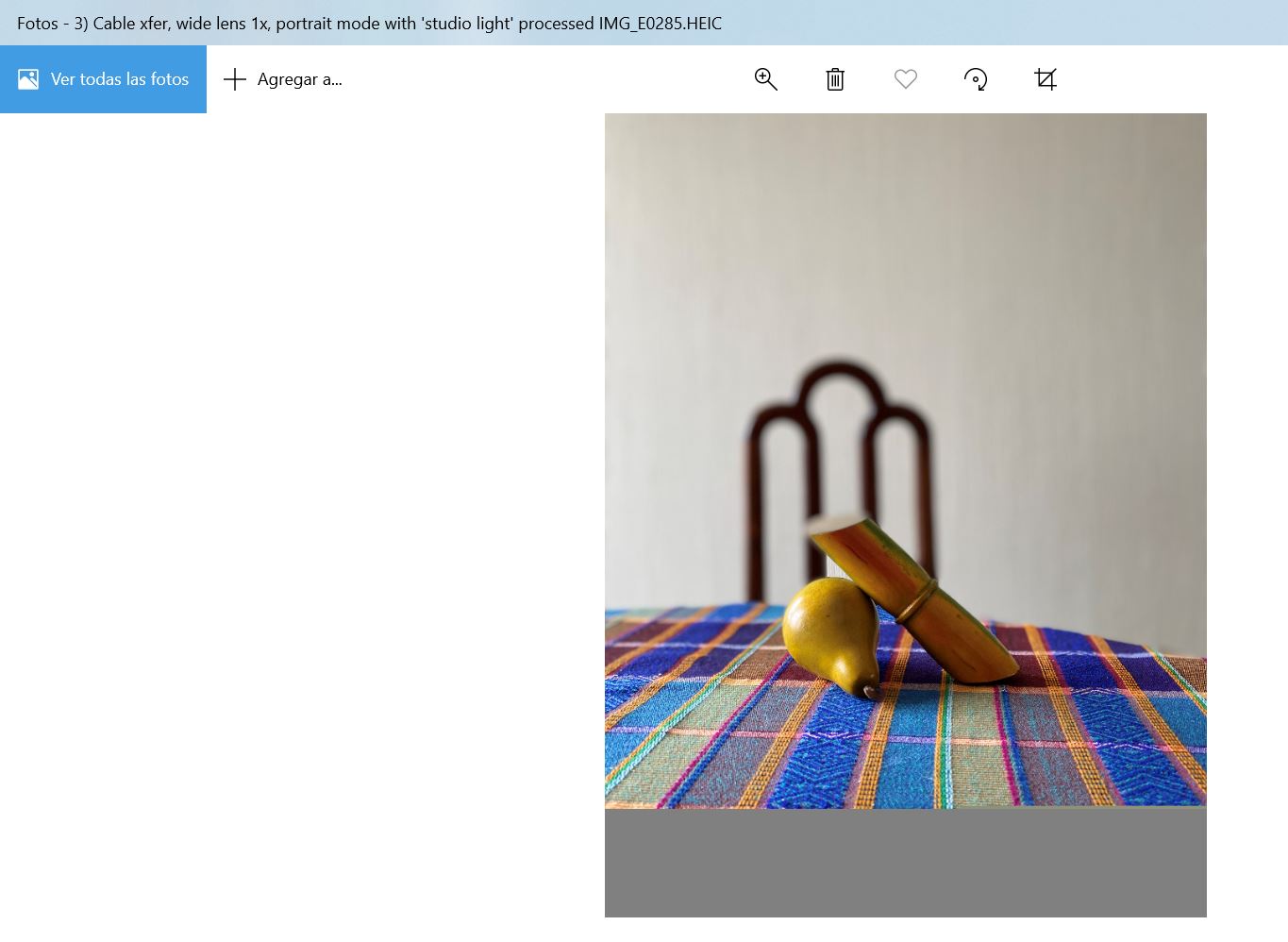 When transferred all the photos from iPhone to PC (Windows 10 OS): all HEIC files transferred properly, all "Portrait" photos transferred as IMG_EXXXX.HEIC (!) and the issue with the grey area appeared.