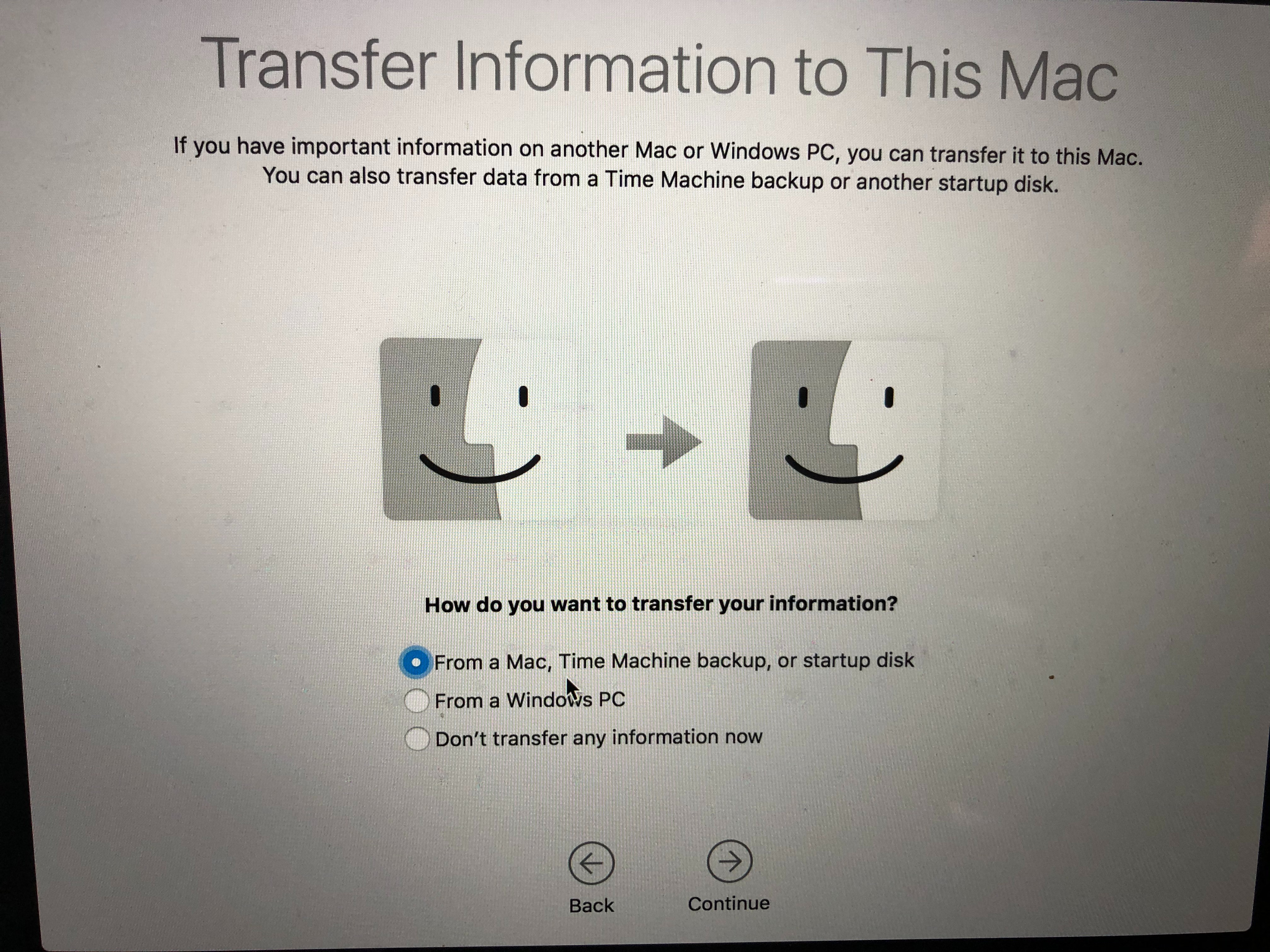 I have an Early 2015 MacBook Pro Core i5 that was completely wiped clean. I need to reinstall the operating system, but I can't get passed the "Transfer Information to This Mac".