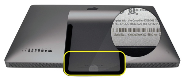 • Find the serial number printed on the underside of your Mac, near the regulatory markings. It’s also on the original packaging, next to a barcode label.