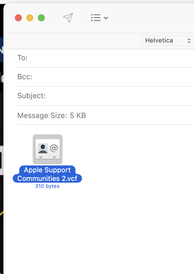 need help copying a contact card from Contacts and pasting into email?