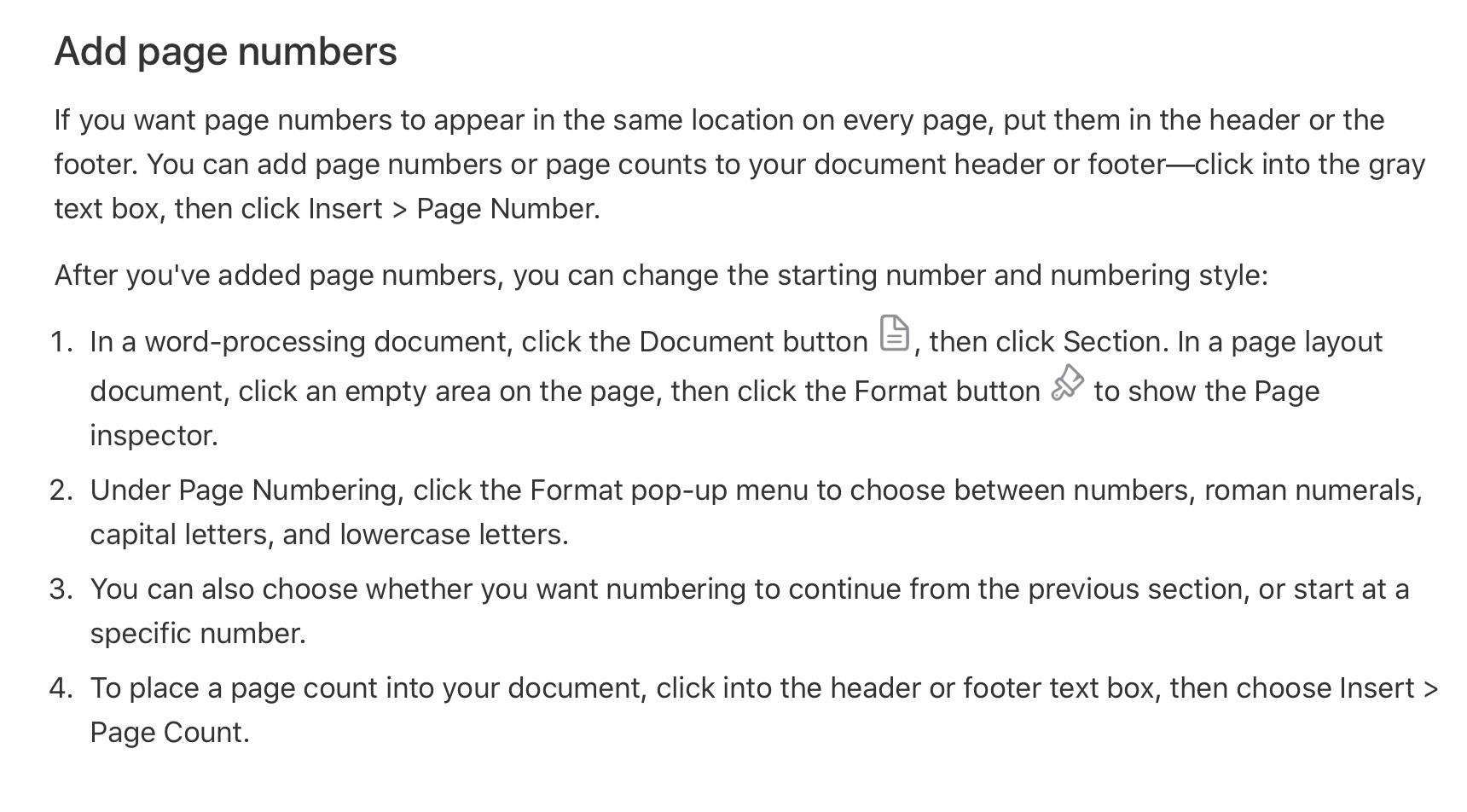 We see that you are trying to get the options for Page Numbering to be available in the Pages app on your Mac.