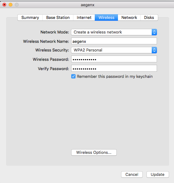 If you decide to do this, you will need to remove the check mark next to 5 GHz Network Name in Wireless Options in AirPort Utility, click to Save the new setting, then click Update to restart the Time Capsule.