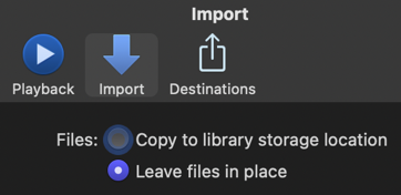I want to leave the video clips in place. I dont want to create a duplicate - In final cut it appears I have only two choices: either I have it imported into the library, or I choose a separate folder location (media location under storage settings). But I am looking for a third option. leave the clips where they are instead of making a copy of the video clips. Option 1 just creates a big file with duplicate video clips and option 2 does the same thing but stories it in the library. I want to leave the video clips where they are so I dont create extra space on the drivve.