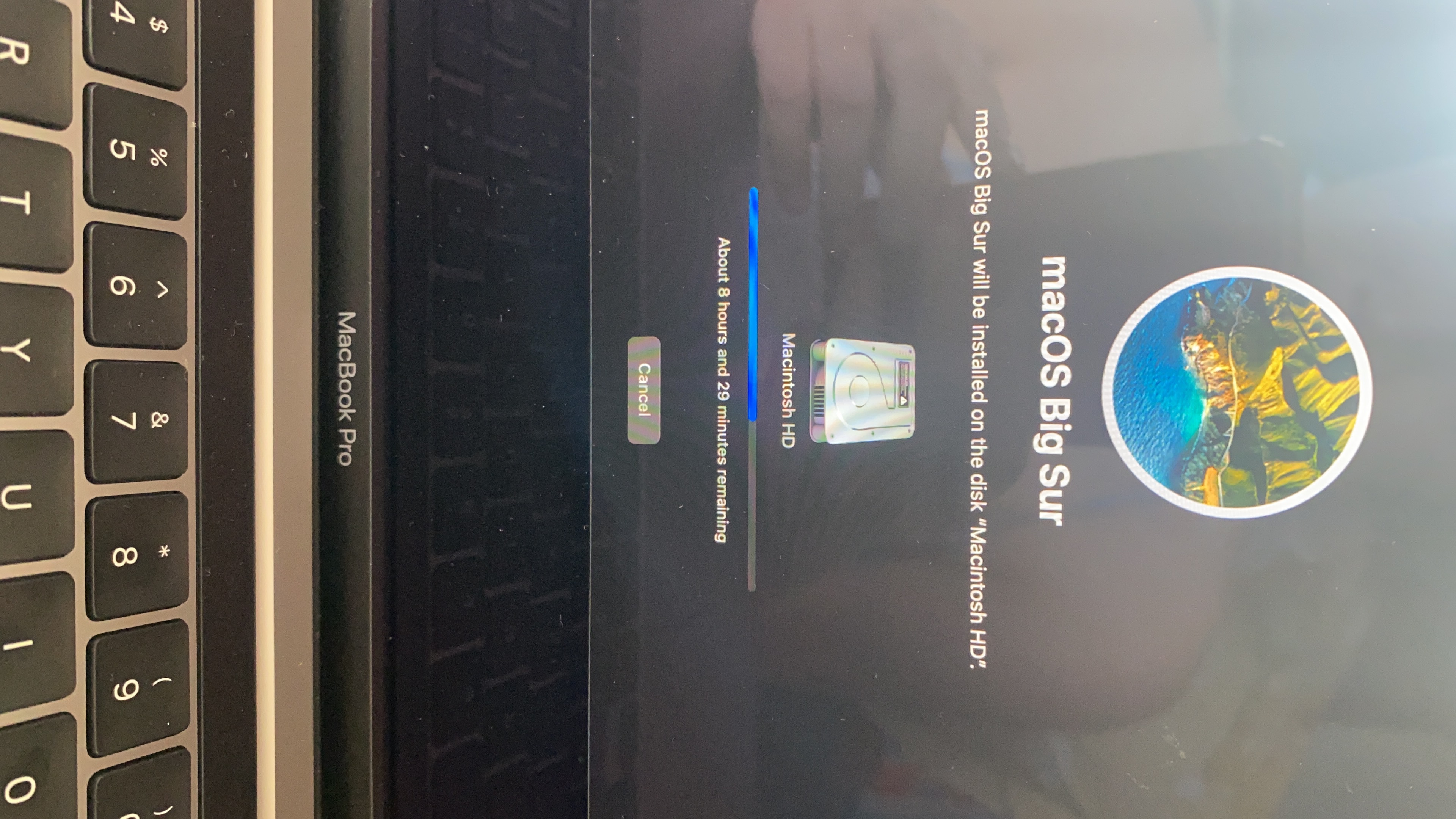 Here comes the problem. I erased the HD and Data but when I wanted to reinstall the Big Sur, it took very long to install, the bar even shows “8 hours and ___ minutes remaining”. Decided to wait about an hour but the estimated time remained the same.
