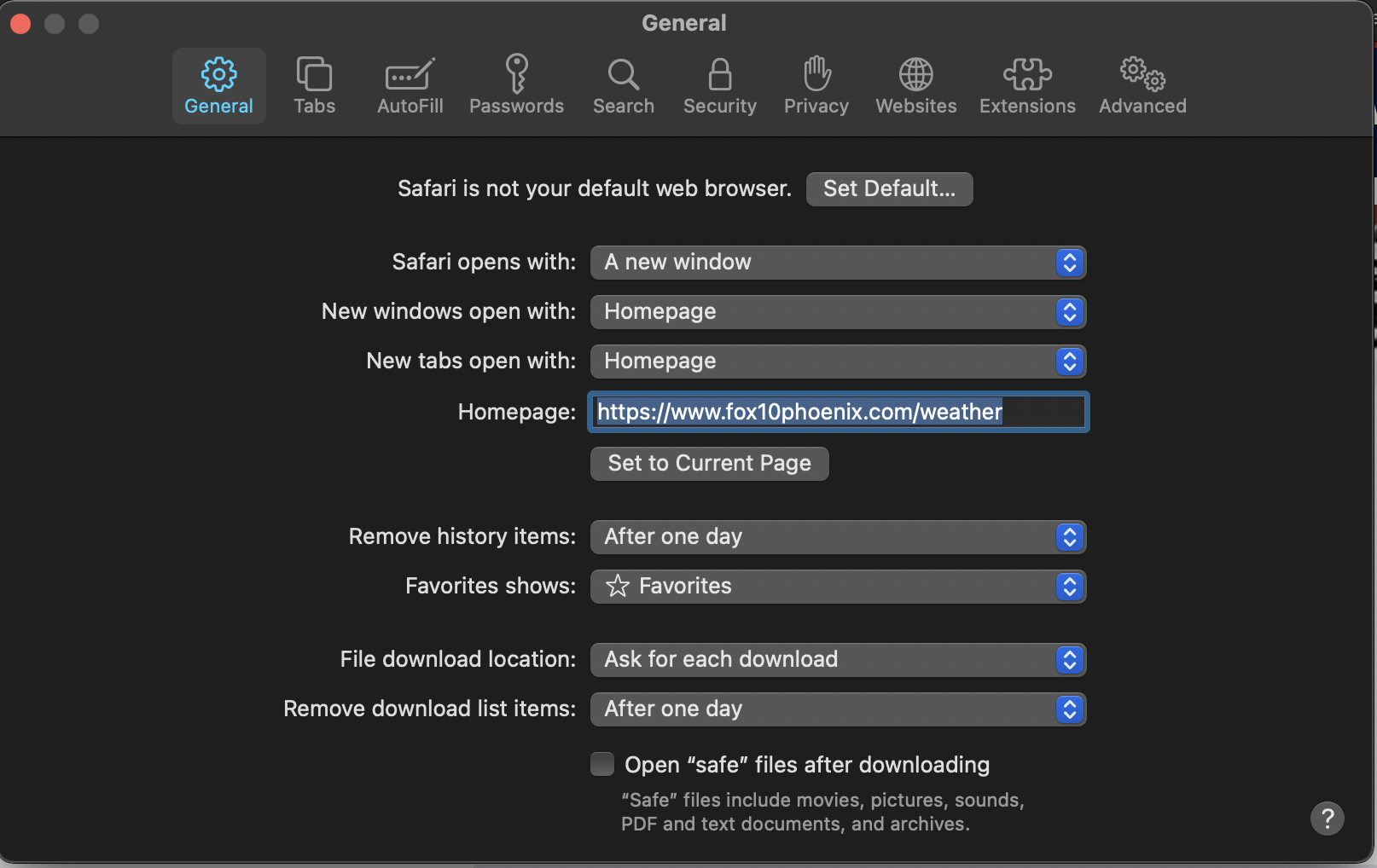 How do I stop Safari from using its start page. I want to go to my homepage when I open Safari, not its start page.