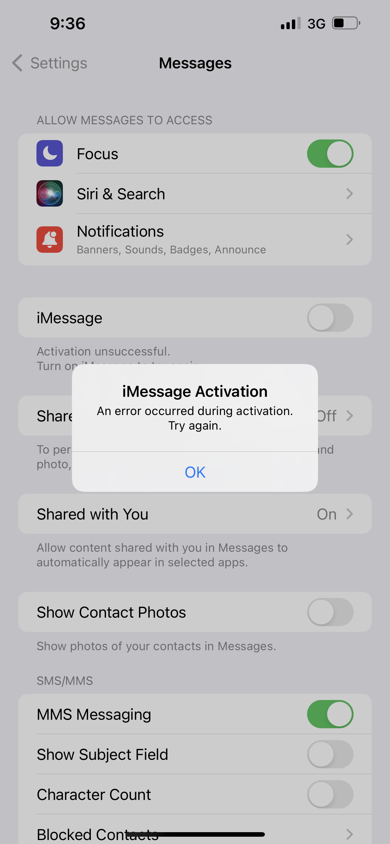 iMessage activation failure