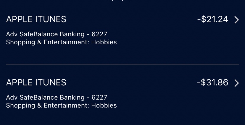 There’s purchases name apple iTunes in my bank account but I’ve never purchased iTunes or anything besides my Apple Music. Is multiple purchases for the same thing. I have not purchased anything in apple for 22 or31 or 9 dollars, my only subscription with you guys is my Apple Music and it’s paid