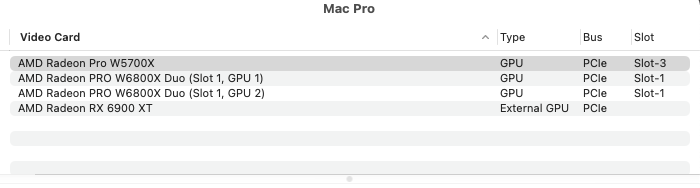 I am using 3 GPUs. W6800X DUO, W5700X and RX6900XT.