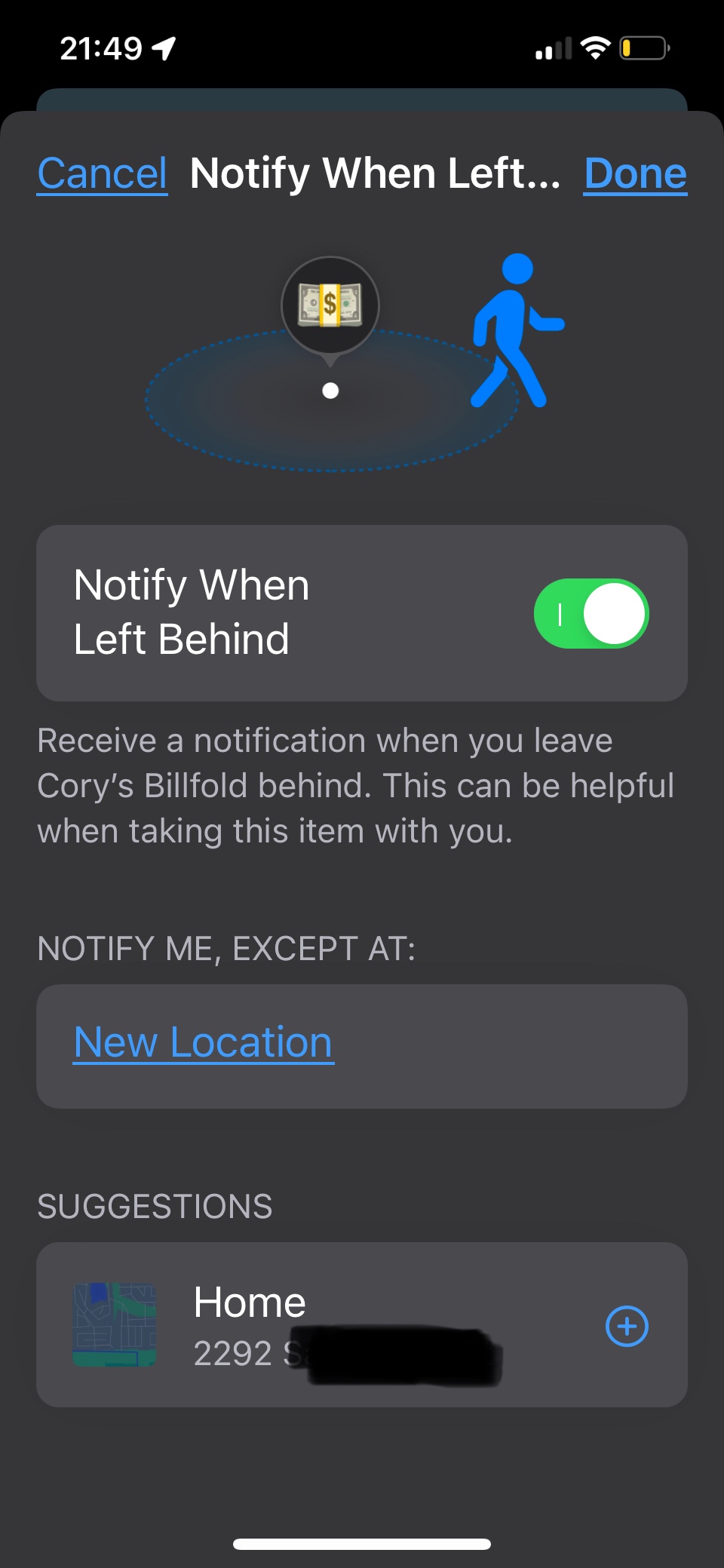 "Find My app: I recently moved states. I’ve updated my address everywhere I can think of on my phone. In Find My, it still shows my old address as Home. I noticed it when I added an AirTag. It defaults to notify when left behind, on, to Home. Help please."