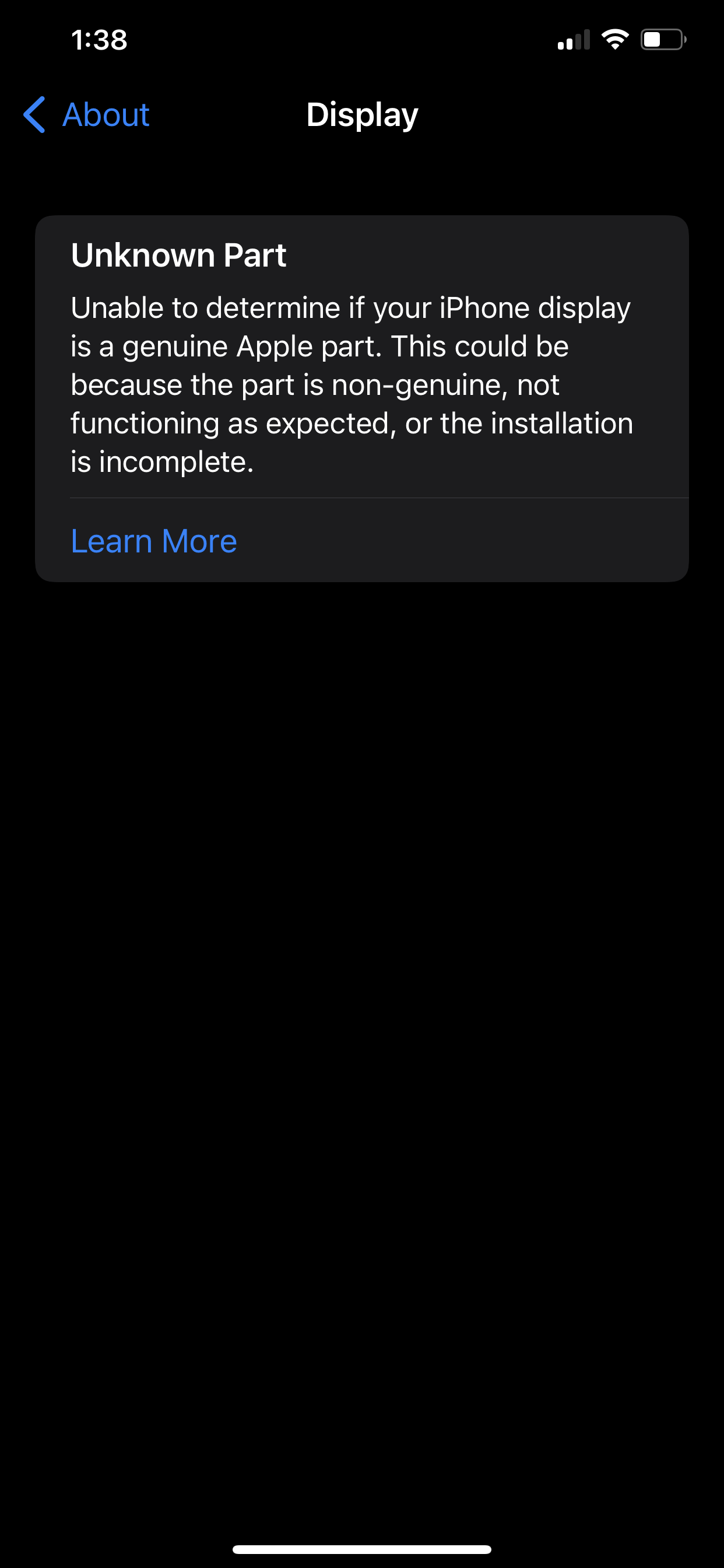 B. Learn More On this here: About Genuine iPhone Displays - Apple Support