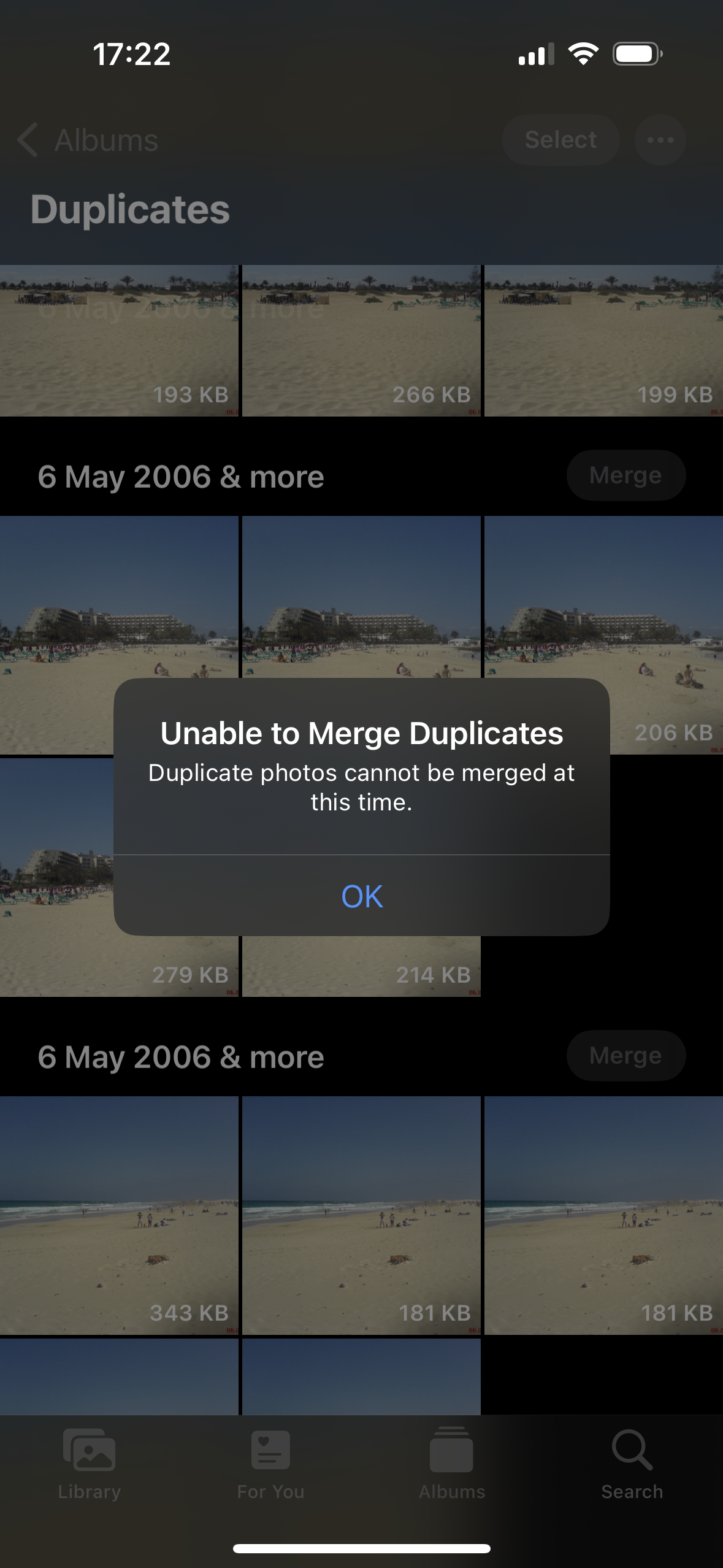 iOS 16 "Duplicate photos cannot be merged at this time."