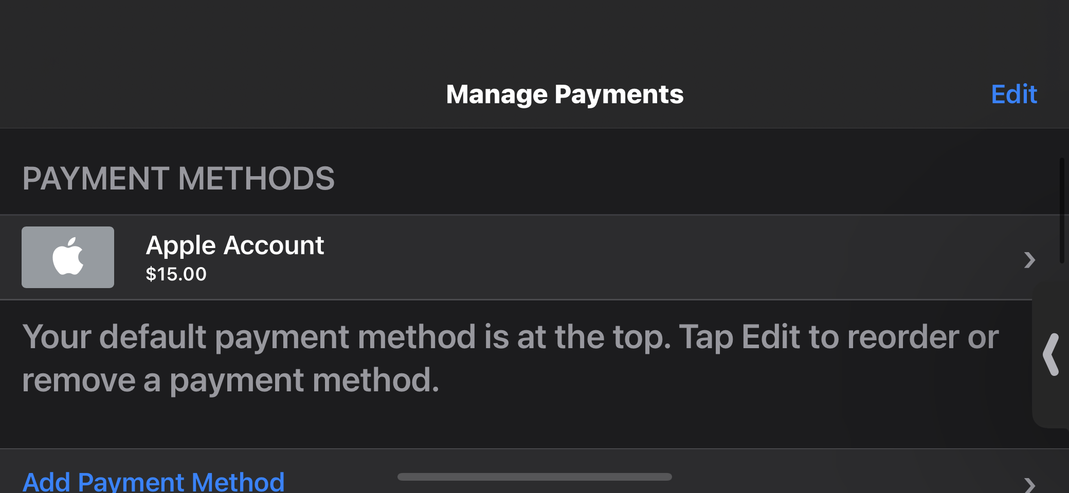Once the Apple Account credit is gone, it will come out of your default Method of Payment.