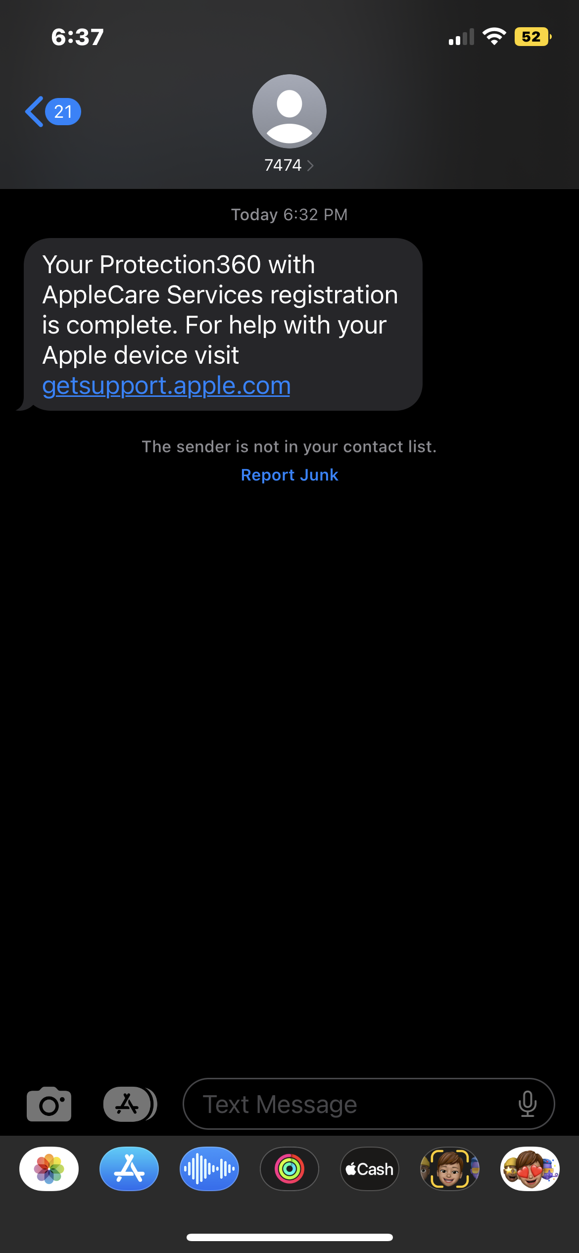 I just received a text from T-Mobile stating that my applecare registration is complete. i have no idea where this is from, and i didn’t do anything related to applecare today. should i be concerned? or do i just ignore it?