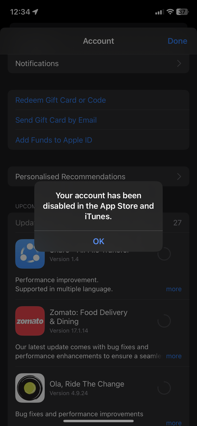 my account has been disabled in the appstore and itunes
