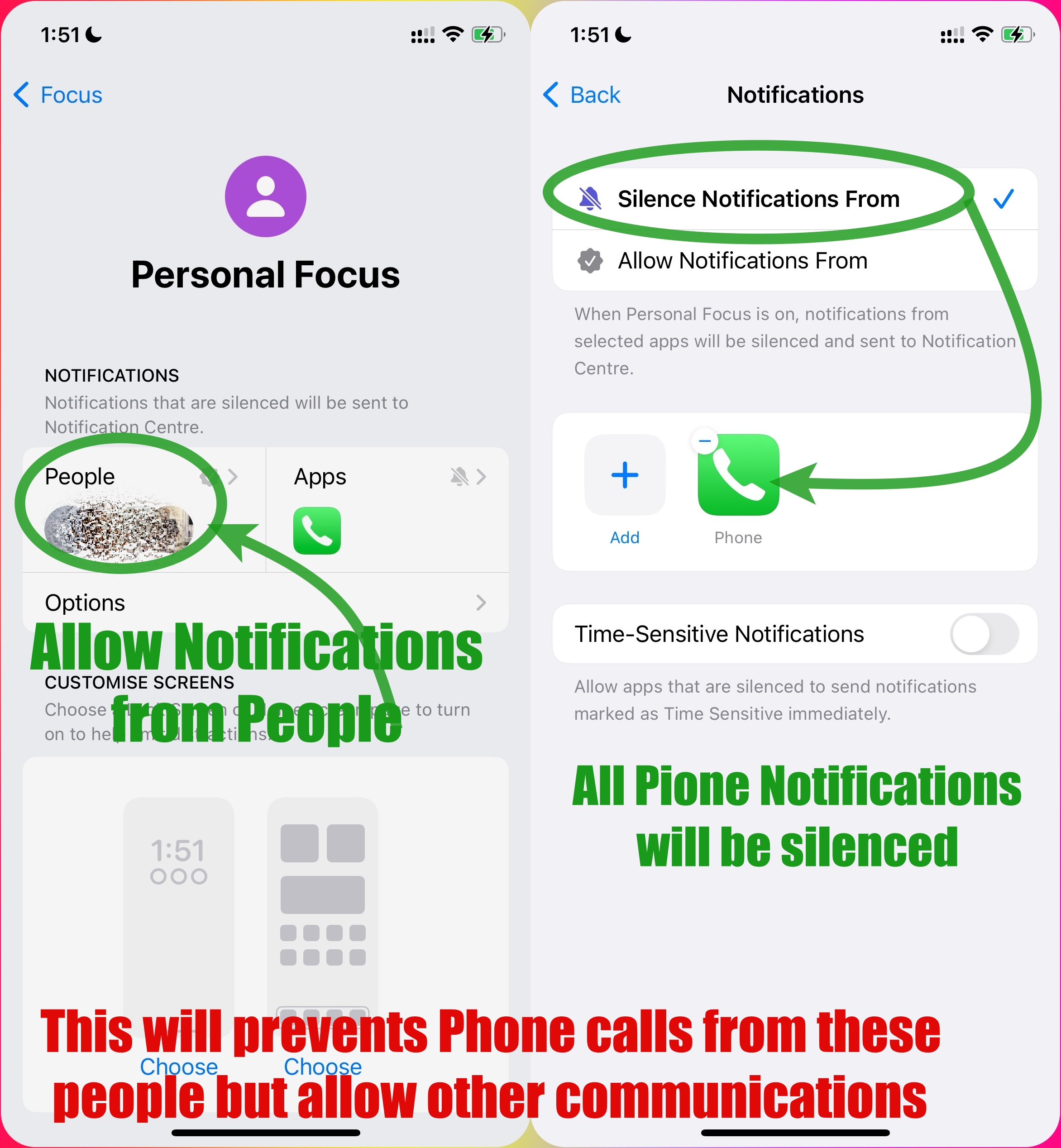 I am trying to set up a Personal Focus that will allow all app notifications including ALL text notifications, but will only allow calls from certain callers. Yes, I'm basically just screening calls when this Focus is on.