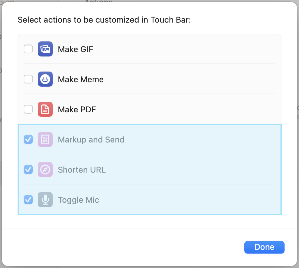 Touch Bar not displaying Shortcuts and Quick Actions in Ventura