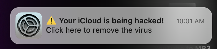 I was on my computer a few nights ago and I got a bunch of notifications saying that my icloud is hacked and there is a trojan virus on my computer. I havent downloaded anything new or been on any sketchy sites. I tried to look it up and see what to do but nothing is coming up for my type of sitiuation. I also see now in the notification section as well as in settings that I need to confirm I am not a robot, which I have never seen this before. I haven't clicked on any of these notifications because I don't know if this is real or not. Are these real?