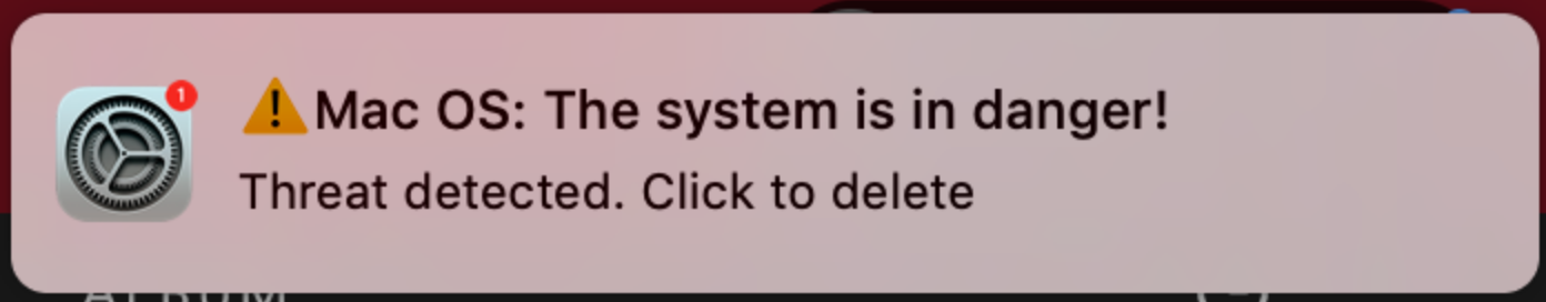 "Mac OS: The System is in danger! Threat detected. Click to delete"