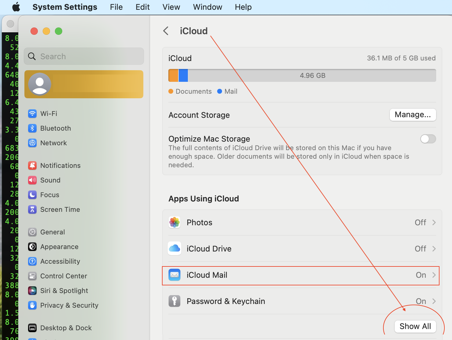 Verify your Mail is checked in >System Preferences>AppleID>iCloud>Show All