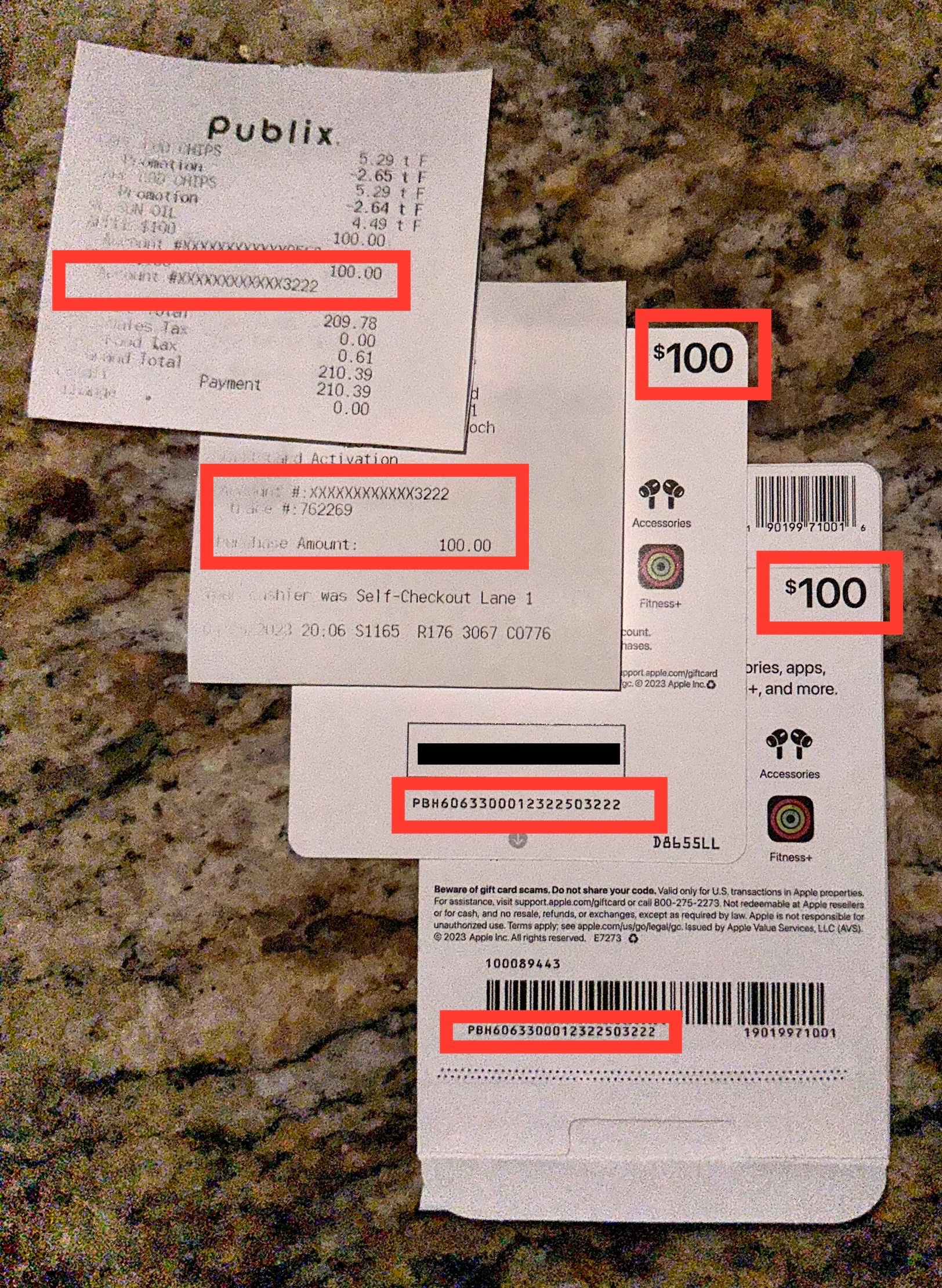 Anyone could say I have purchased a Apple Gift Card or App Store & iTunes Gift Card, but then there must be a receipt.