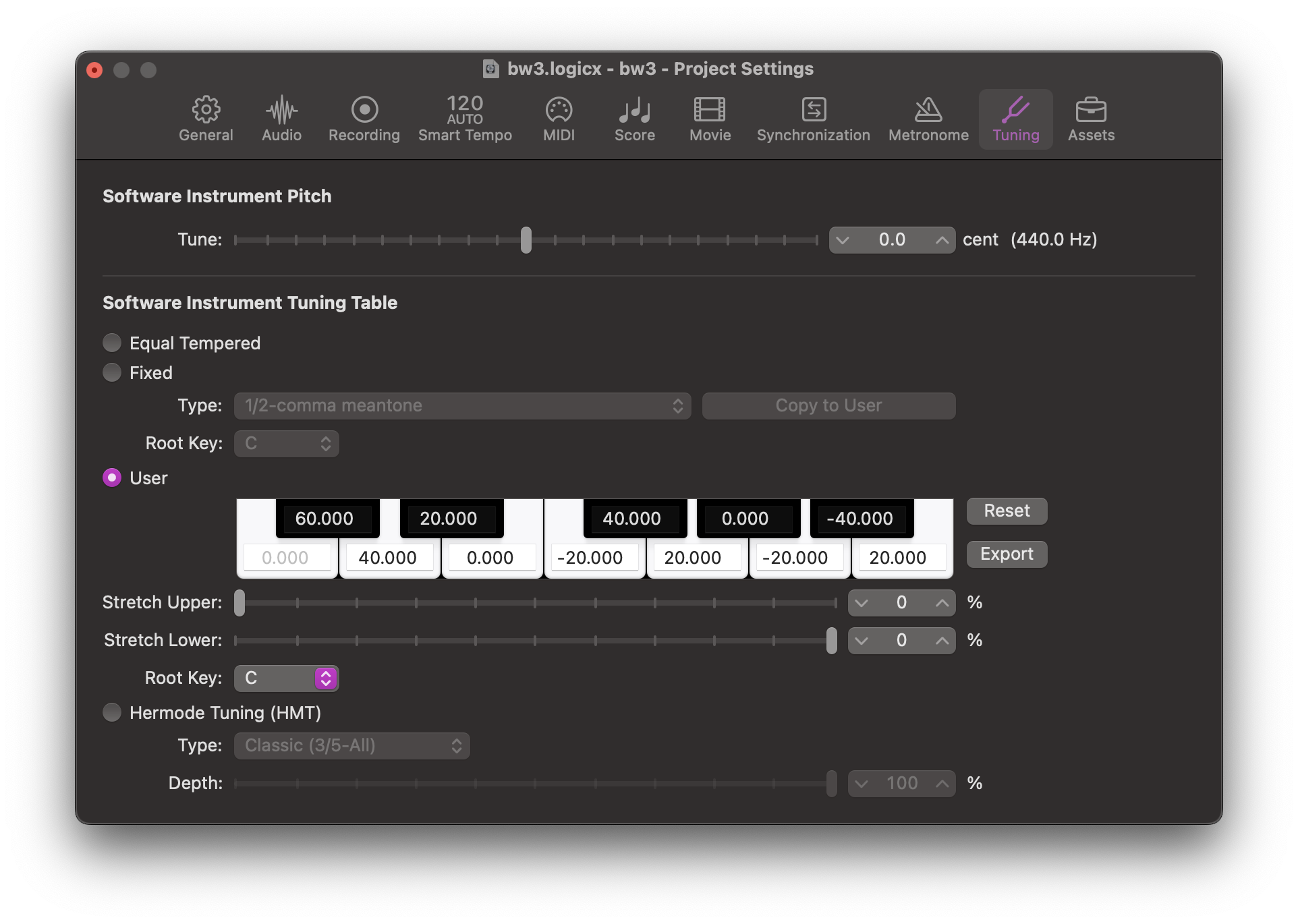How to create a 15edo tuning in Logic Pro X?