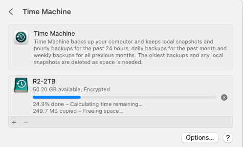 Does 249.7 MB at 25% suggest it only needs to back up 1 GB? If so there is 50GB available so what is the issue?