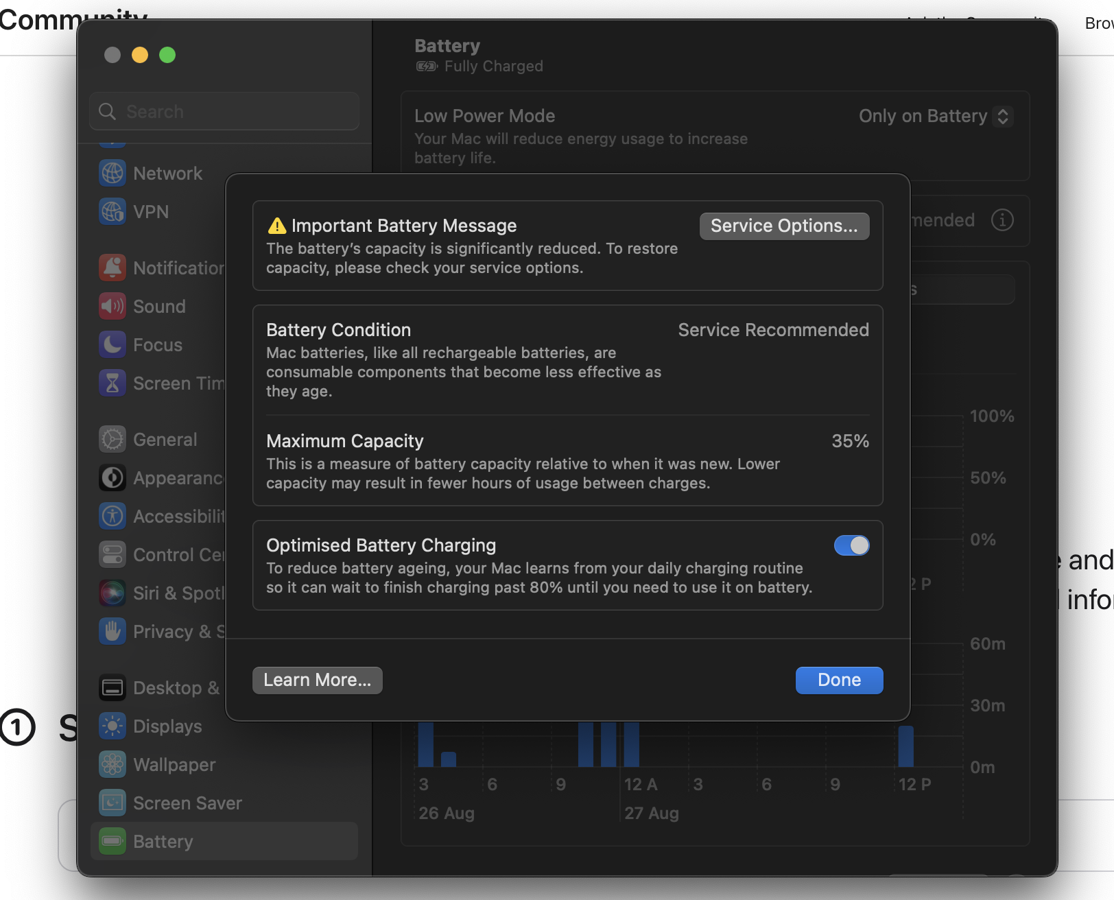 Macbook Air M1 battery health dropped to 35% in 2 years, Total charging cycle is 497.