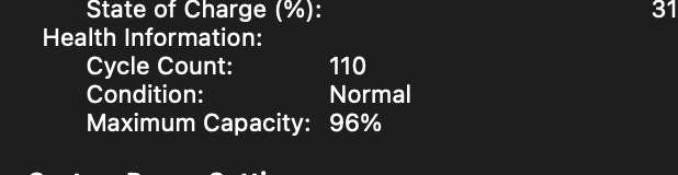 Hi, I bought my M2 pro MacBook Pro 14" in the month of March and I am already at 96% in battery capacity. Is this normal ?