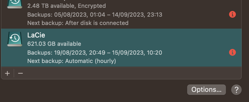 Time Machine says the disc is not available. IT IS. It is only since upgrading to Ventura that Time Machine has stopped working.