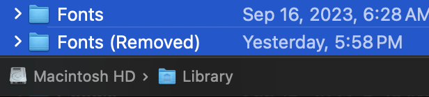 Any fonts you’ve installed are placed in /Library/Fonts (Removed) or in ~/Library/Fonts (Removed).