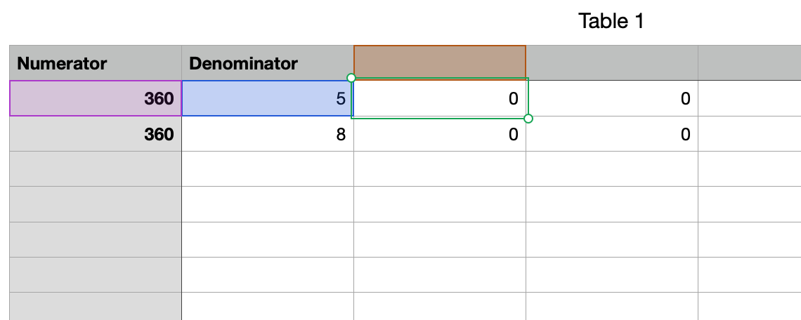 next time it will be 360 divided with another number ex 8, I then need 8 answers