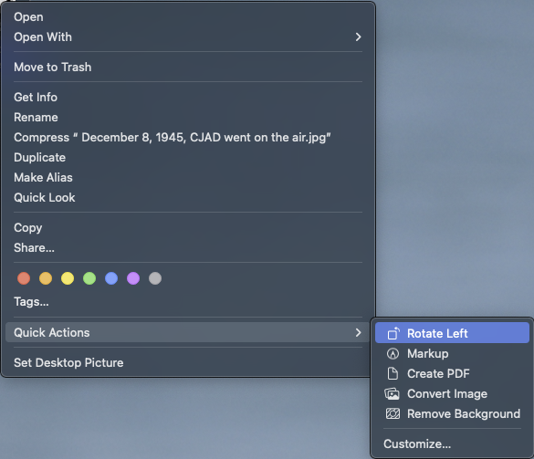 Thanks for the "vintage" screenshot. :-) BTW, rotating an image back and forth (press option) using a Finder Quick Action might also work: