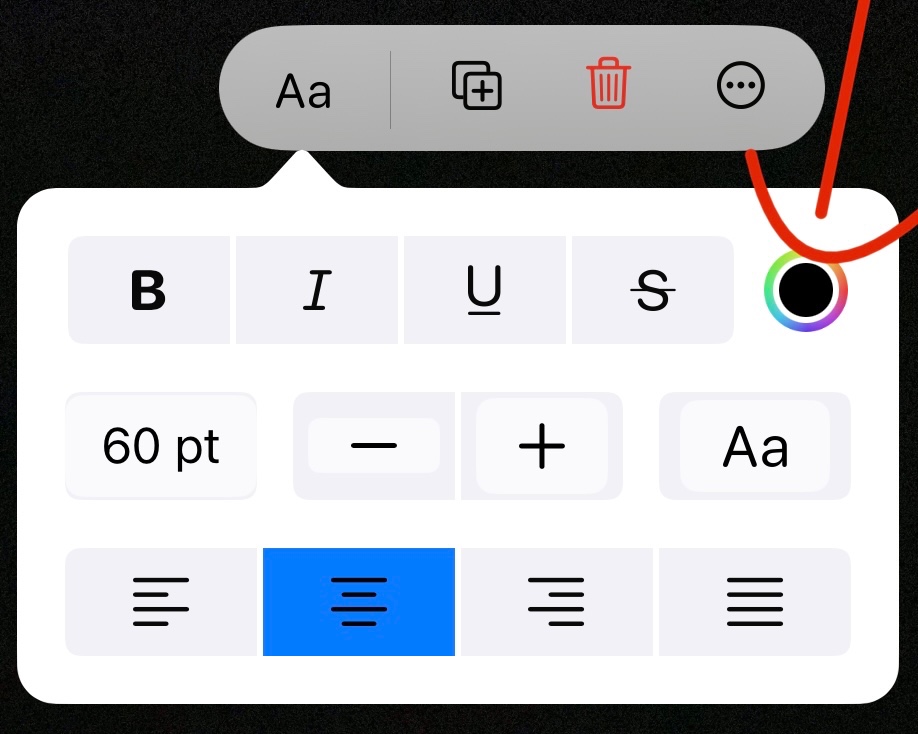 Developers: just let us change the color with the tool that first shows up to select what type of pen you want that has the color dot on the right! Press that, change color, press Aa, press the color dot and presto-chango. Then we (the users) won't have to go on a treasure hunt just to change text color!!