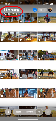 But if you scroll up to see more of the Library, it says "Library" at the top and you can pinch the screen to get other odd-numbers rows, like 5, 3 or 1 across. Or "many."