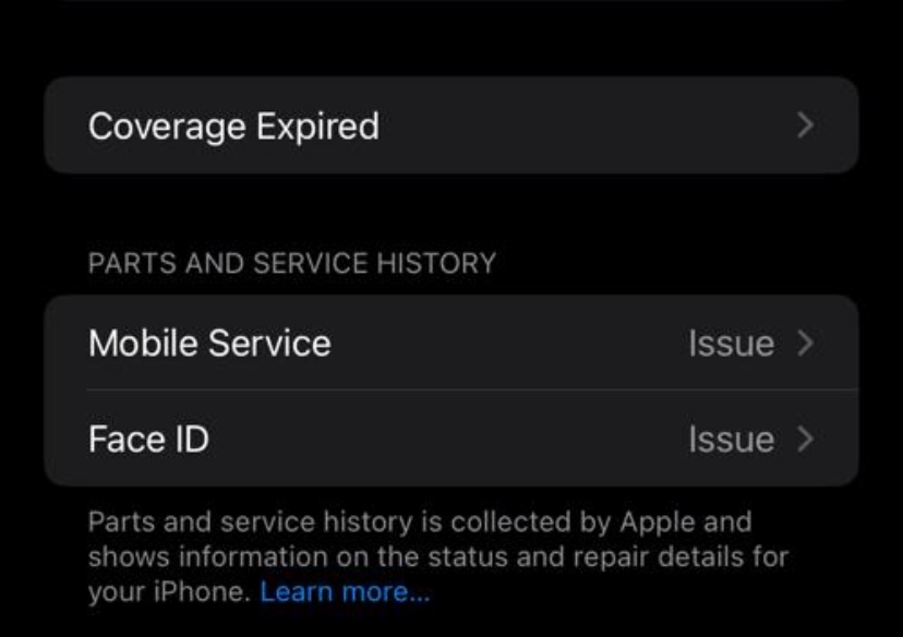 Learn more about iPhone parts and service history.