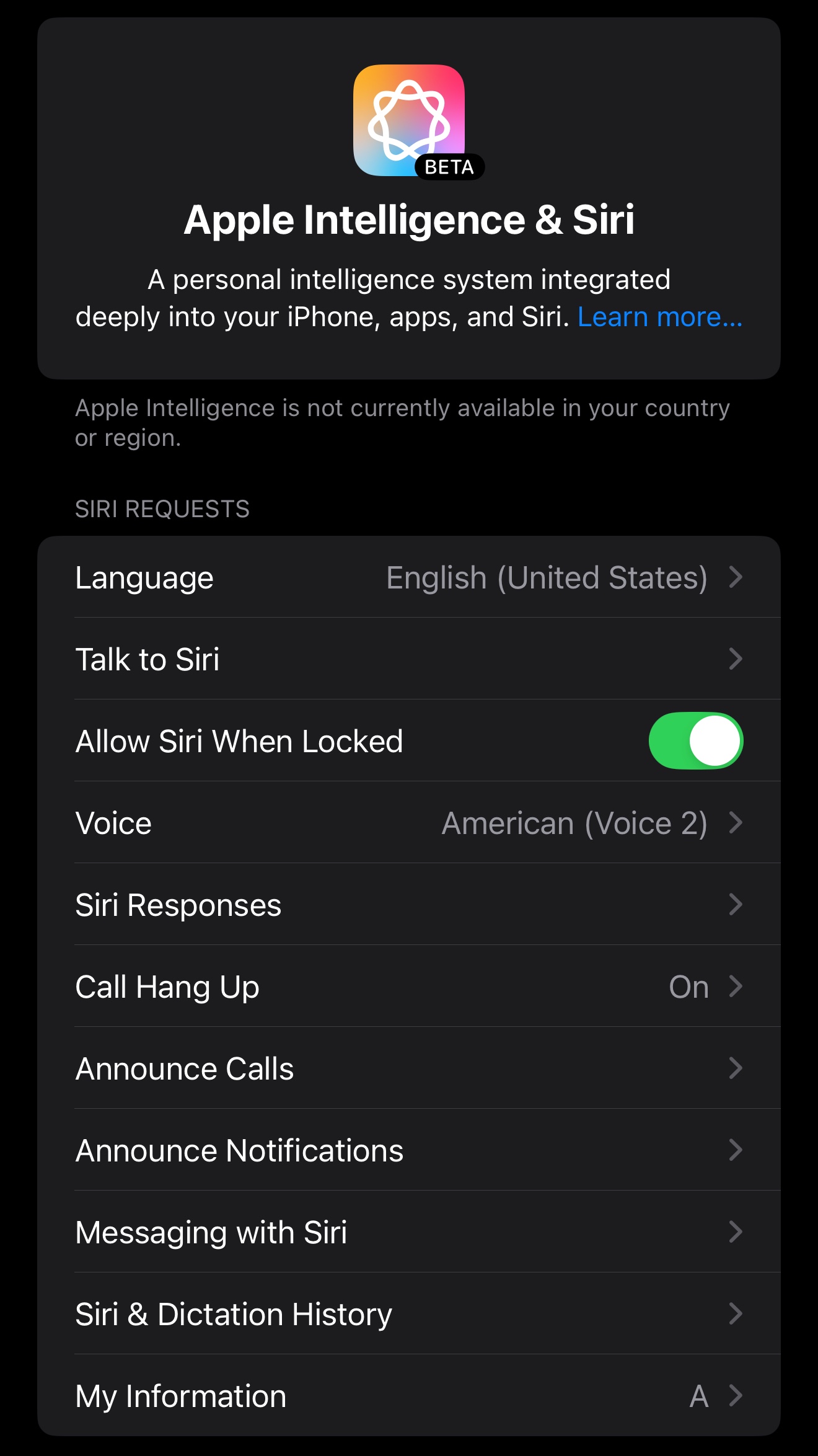 At Settings, at 'Apple Intelligence and Siri' section, I do get all the options to configure Siri (which are all active, didn't change anything).
