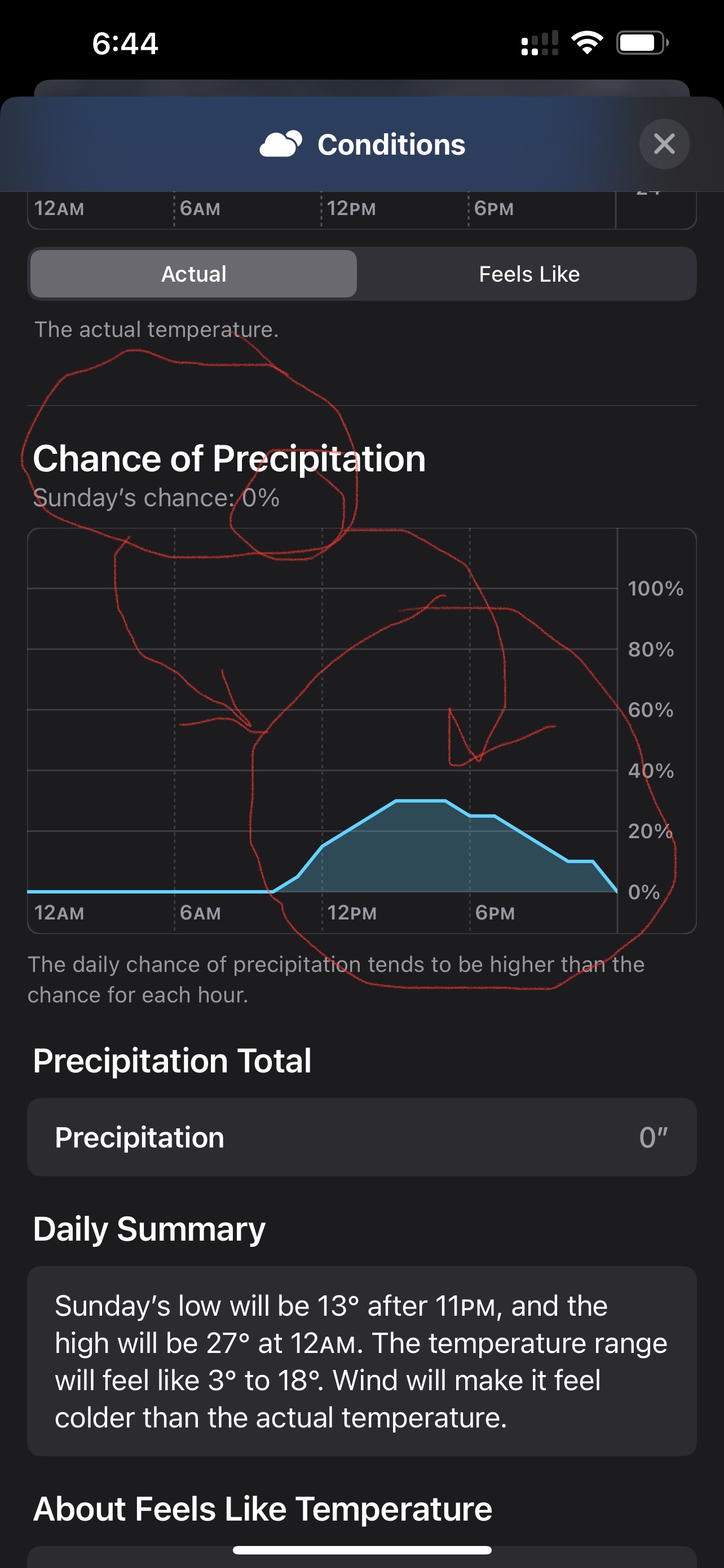From that point on, Weather’s accuracy declined precipitously! It has never gotten better for years and is instead now even disagreeing with itself! This is a single snapshot of a very common occurrence. 🤦♂️
