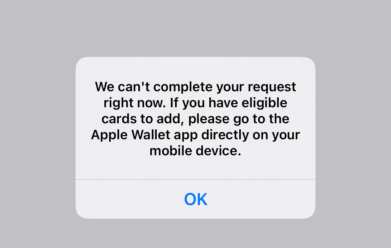 Unable to connect card to Apple Wallet after multiple failed attempts