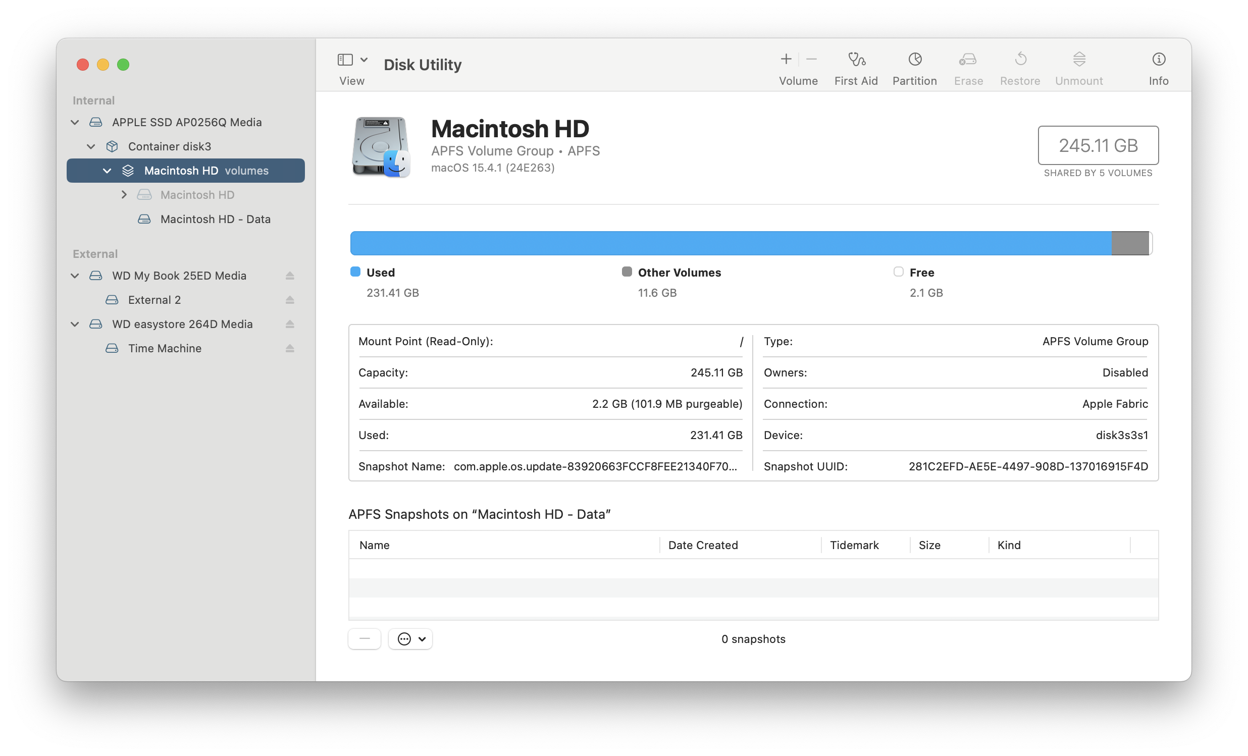 The other day, I was trying to install an update on my 2021 M1 iMac. The update was 19G, and I only had 4.5G of available space on my internal 256G drive.I was able to free up space by deleting all of the apps that ‘storage’ said were incompatible. After updating, I am back to only having 4.5G of space available on the internal drive. I use an 8TB external drive for file storage, but unfortunately, I can’t put system files there. Storage says that System Data is taking up 122G of my drive. It doesn’t give me any options on what to do with that. Deleting Apple Intelligence frees up 10G of space, so getting rid of that could be an option. I also have a 10G backup of my iPhone, but no option is available except to delete it. I’ve been using Macs for nearly 20 years, and have been migrating to a new Mac every few years using Time Machine backups. Are these space limitations normal? Is it possible to move my phone backup and apps to the external drive?