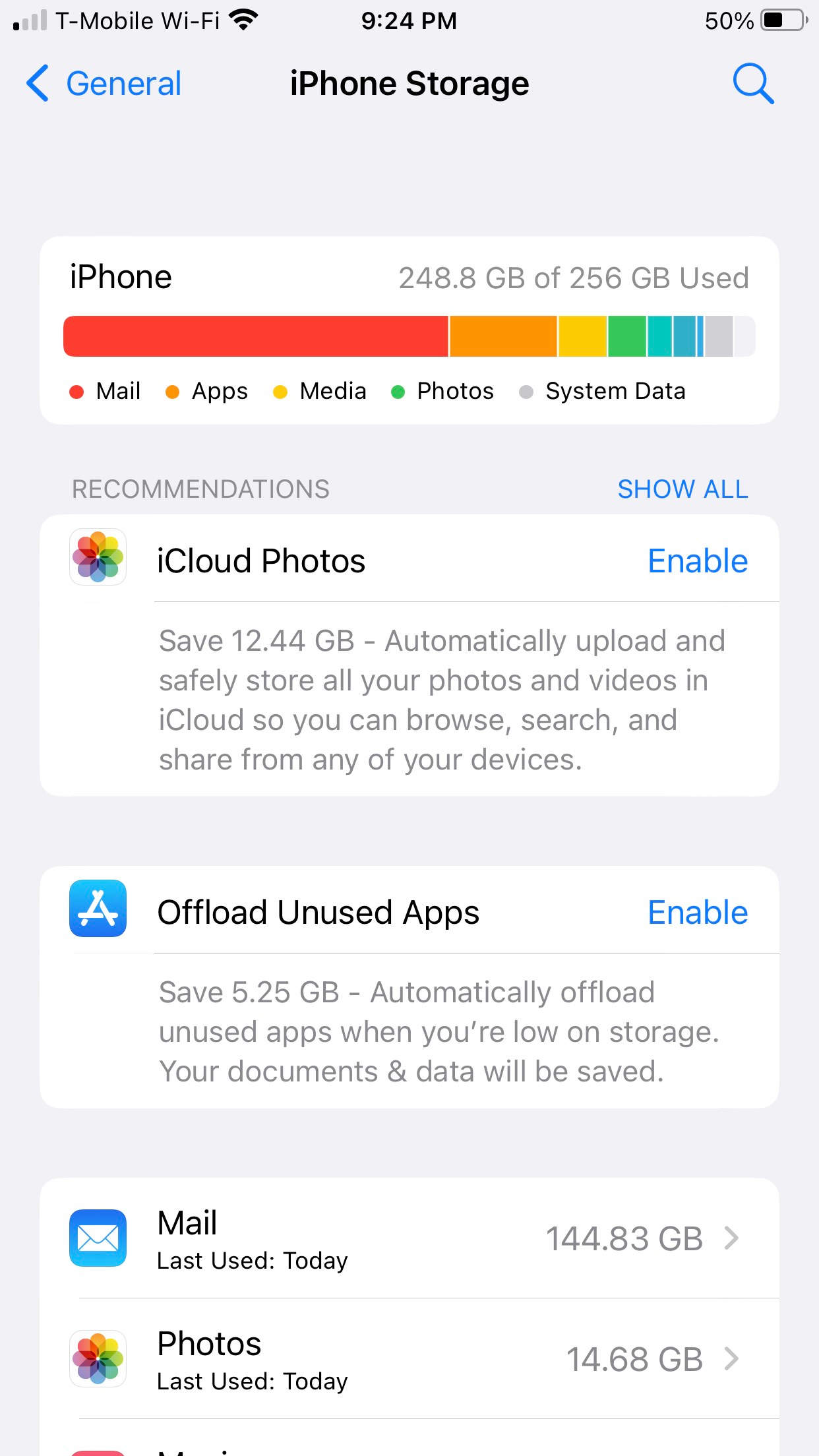 Why is Mail app using 145GB of storage on my iPhone?