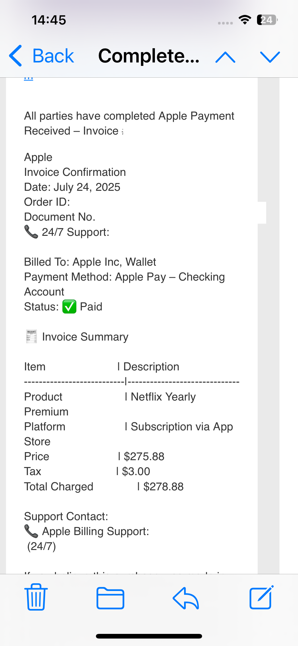 they sent notice of an annual Netflix charge charged to Apple wallet but I pay a monthly DD.