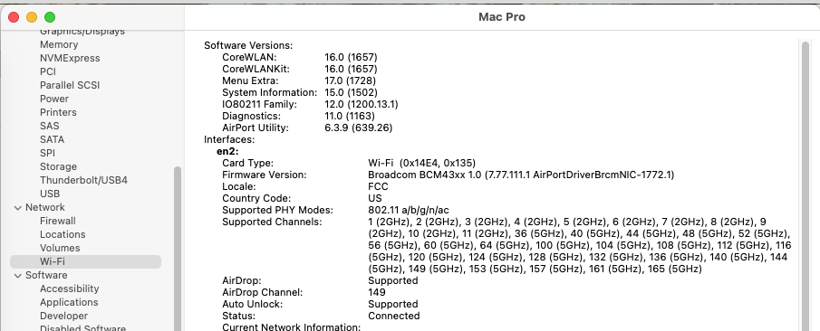 So whether the computer connects  only allows UNII - 3 channels (149 through 165) versus UNII - 1 channels (36, 40, 44, and 48)