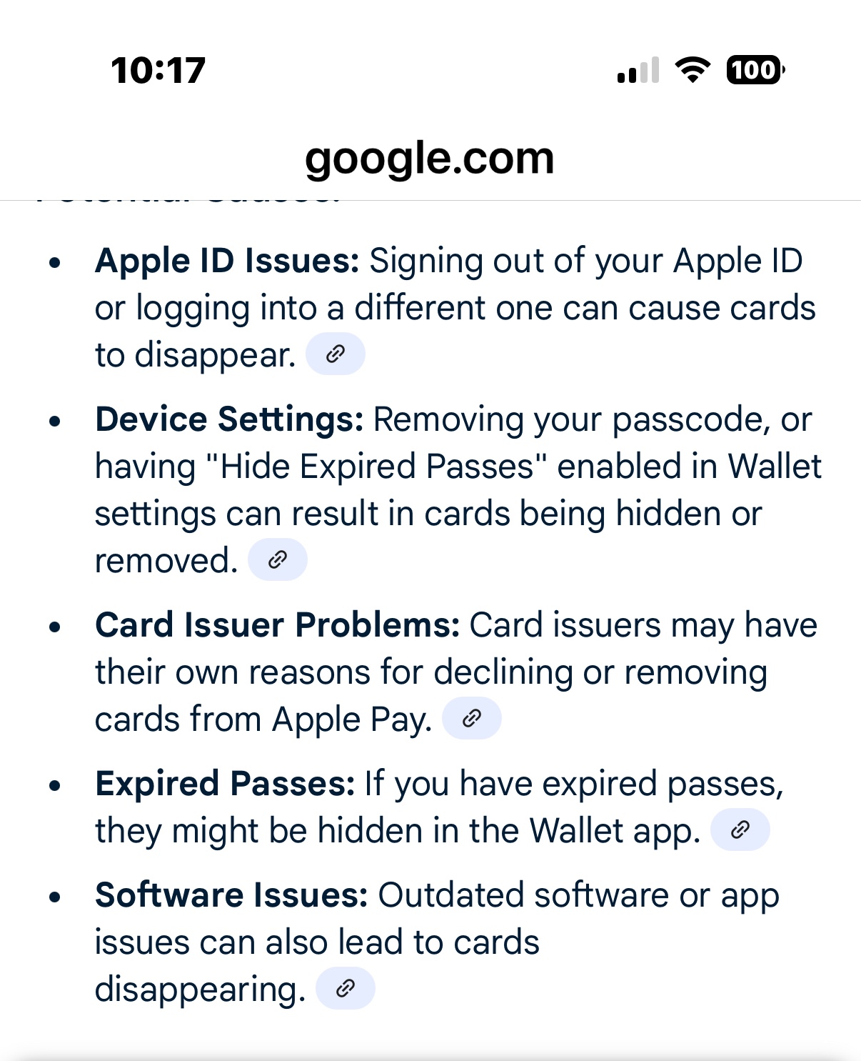 I have toggled Wallet double click (dc) button off/on and completely cleared Safari cache, turned phone off and on but DC still not working