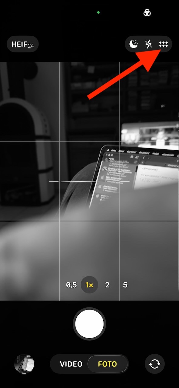 Tap the arrow icon at the top of the screen or swipe up on the live view.