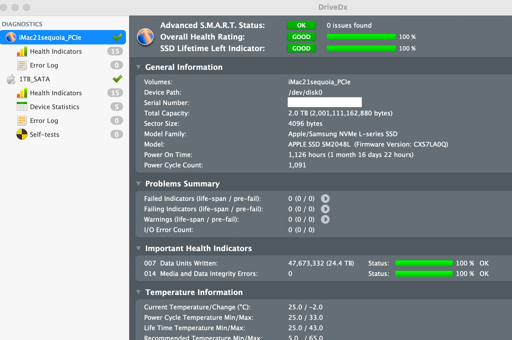 DriveDX reports as Apple/Samsung NVMe L-series SSD